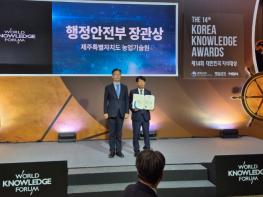 제주도는 ‘현장 데이터 기반 문제 해결형 농업 디지털 대전환(DX) 플랫폼 제주DA(Jeju Digital Agriculture) 구축’ 사업의 혁신성을 인정받아 행안부 주최 ‘제14회 대한민국 지식대상’에서 우수상을 받았다.