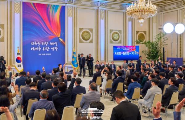 이 대통령은 이날 오전 10시 청와대 영빈관에서 '회복을 위한 100일, 미래를 위한 성장'을 주제로 열린 취임 100일 기자회견에서 "앞으로 남은 4년 9개월은 '도약과 성장의 시간'"이라며 이같이 말했다.
