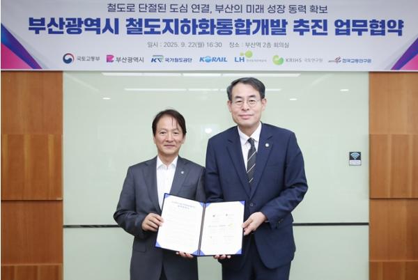 아울러, “이번 협약을 통해 경부선(부산진역~부산역구간) 철도지하화 통합개발 사업이 대한민국 철도 지하화의 성공 모델로 자리 잡을 수 있도록 모든 행정 역량을 다하겠다”라고 덧붙였다.