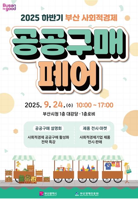 [종합뉴스채널, 홍희주기자] 부산시는 내일(24일) 오전 10시 시청 1층 대강당과 로비에서 '2025 하반기 부산 사회적경제 공공구매 페어'를 개최한다고 밝혔다.