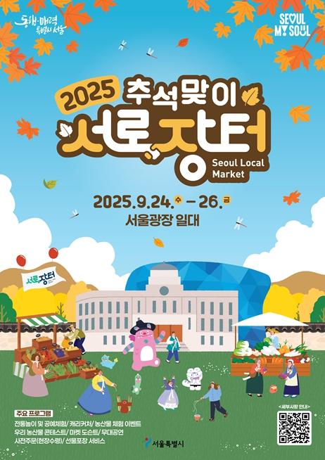 [종합뉴스채널, 김현성기자] 서울시는 한가위를 맞아 전국 최대 규모의 직거래장터인 '추석맞이 서로장터'를 오는 9월 24일부터 26일까지 3일간 서울광장에서 개최한다. 우수 농수특산물을 한자리에서 만날 수 있는 동시에 최대 30% 할인 판매하여 시민들의 추석 장바구니 부담을 덜고, 다양한 문화공연과 체험 및 경품 이벤트도 준비되어 있다.