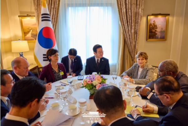 [종합뉴스채널, 김기훈기자] 유엔총회 참석 차 미국을 방문한 이재명 대통령이 22일(현지시간) 오후 뉴욕에서 미 상원 외교위 및 하원 외무위 소속 의원 4명을 접견하고, 한미동맹 강화, 한미 경제협력 확대 및 한반도 문제 등에 대해 의견을 교환했다.
