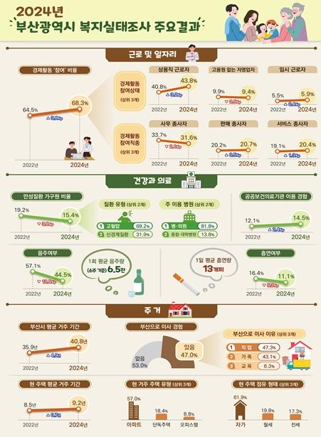 부산시는 부산연구원과 함께 복지정책 수립을 위한 실증적 기초자료 확보를 위해 진행한 '2024년 부산시 복지실태조사' 결과를 공표했다.