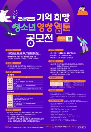 [종합뉴스채널, 박광덕기자] 경기도교육청4.16생명안전교육원이 ‘2025 기억 희망 청소년 영상‧웹툰 공모전’을 개최한다.