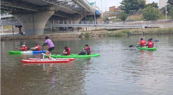[종합뉴스채널, 박정혜기자] 서울 동대문구는 30일 이문수변공원 내 수상스포츠체험교육장에서 시각장애인 대상 카약 체험을 진행했다고 밝혔다.