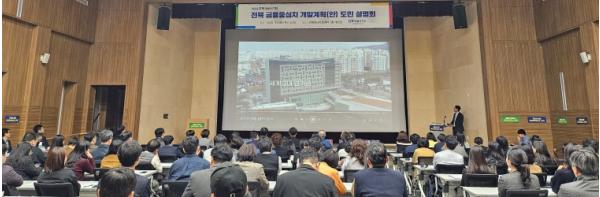 [종합뉴스채널, 홍희주기자] 전북특별자치도는 6일 전북테크비즈센터 대강당에서 ‘전북 금융중심지 지정’을 위한 도민 설명회를 열고 금융중심지 개발계획(안)에 대한 지역사회 의견을 수렴했다. 이번 설명회에는 도민과 금융전문가, 기업인 등 약 100여 명이 참여해 전북 금융중심지의 비전과 추진 방향을 공유했다.