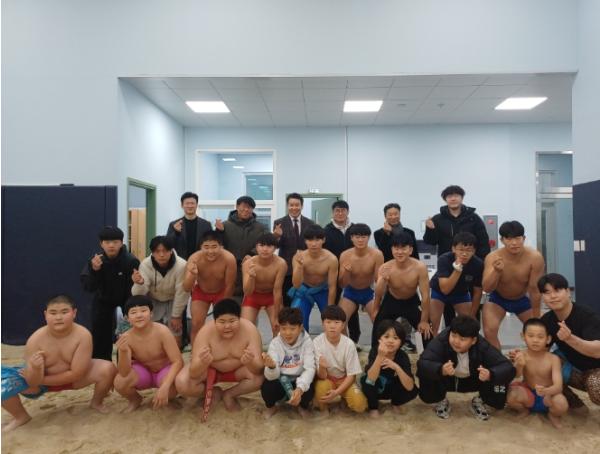 [종합뉴스채널, 박광덕기자] 충청남도태안교육지원청은 지난 12월 2일 태안중학교 씨름장을 방문해 2026년 각종 대회를 대비해 동계훈련 중인 백화초등학교와 태안중학교 씨름부 학생 선수들을 격려했다.