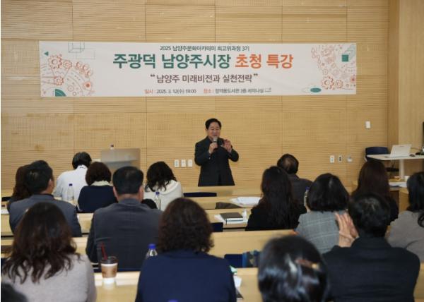 [종합뉴스채널, 최한솔기자] 주광덕 남양주시장은 지난 12일 남양주문화원이 주관하는 문화아카데미 3기 개강을 기념해 특강을 진행했다.