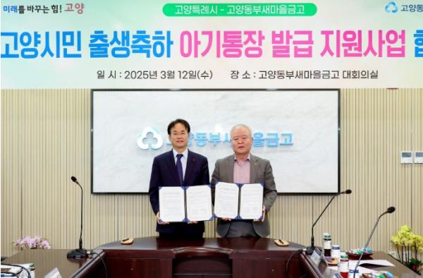 [종합뉴스채널, 최한솔기자] 고양특례시는 지난 12일 고양동부새마을금고와 ‘고양시민 출생축하 아기통장 발급 지원 사업'에 대한 업무협약을 체결했다.