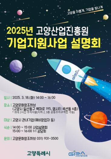 [종합뉴스채널, 발행인기자] 고양산업진흥원이 오는 3월 18일 오후 2시 고양문화창조허브에서‘2025년 기업지원사업 설명회’를 개최한다.