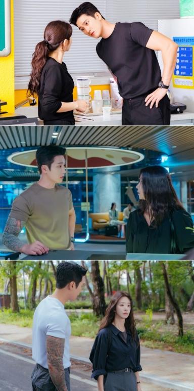 오늘(5일) 공개된 투샷 스틸에는 서로를 팽팽하게 밀고 당기는 선재규와 윤봄의 흥미진진한 순간들이 담겨 있다.