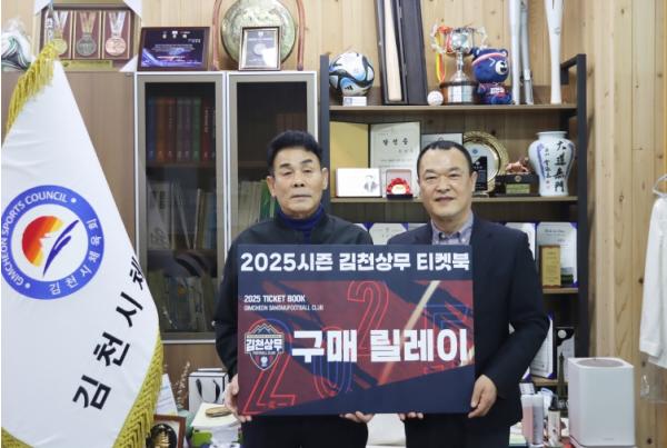 김천시체육회는 지역의 학교 및 사회 체육 진흥 통한 시민 체력 향상, 건강한 시민 사회 조성 등에 이바지하기 위해 설립되어 김천시 체육 발전을 위해 힘쓰고 있다. 또한, 2025 시즌을 시작하는 김천상무의 선전을 기원하며, 체육회 임원 및 직원이 김천상무FC의 12번째 선수가 되어 경기를 열정적으로 응원하기 위해 티켓북 구매릴레이에 동참했다.