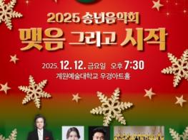 [종합뉴스채널, 김현성기자] 의왕시는 12월 12일 오후 7시 30분, 계원예술대학교 우경아트홀에서 ‘2025 송년음악회–맺음 그리고 시작’을 개최한다.