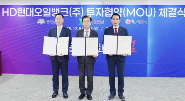이날 협약에는 이완섭 서산시장, 김태흠 충남도지사, 송명준 HD현대오일뱅크 대표이사가 참석했다.