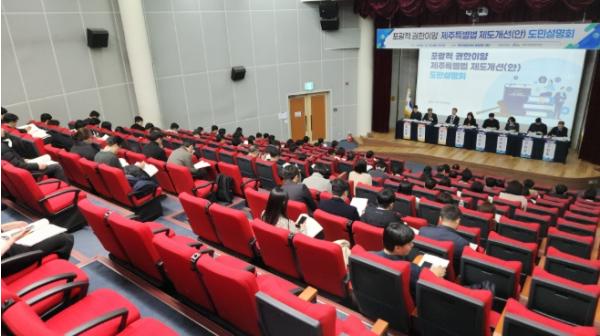 [종합뉴스채널, 김현성기자] 제주특별자치도는 15일 오후 1시 30분부터 제주웰컴센터 웰컴홀에서 공무원과 도민 등 200여명이 참여한 가운데 포괄적 권한이양 제주특별법 제도개선안에 대하여 도민 이해도를 높이고, 다양한 의견 수렴을 위해 도민설명회를 개최했다.