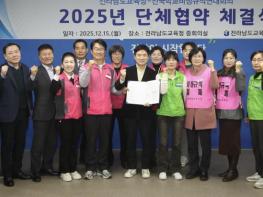 [종합뉴스채널, 박광덕기자] 전라남도교육청과 전국학교비정규직연대회의가 15일 교육 현장의 노사 상생을 통한 교육 공무직원의 권익 신장과 근로 여건 개선을 골자로 한 ‘2025년 단체협약’을 체결했다.