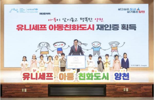 이기재 양천구청장은 “이번 재인증은 2019년 최초 인증 후 지난 5년 간 아동의 실질적인 권리보장에 초점을 맞추고 아동의 목소리를 실현하고자 노력한 결과”라며, “앞으로도 아동이 행복하고 살기 좋은 도시를 유지하기 위해 다양한 분야에서 더욱 촘촘한 정책을 추진하겠다”고 밝혔다.