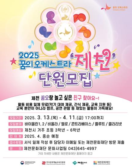 (재)제천문화재단은 지난 3월 13일부터 4월 11일까지 꿈의 오케스트라 ‘제천’ 단원을 모집한다고 밝혔다.