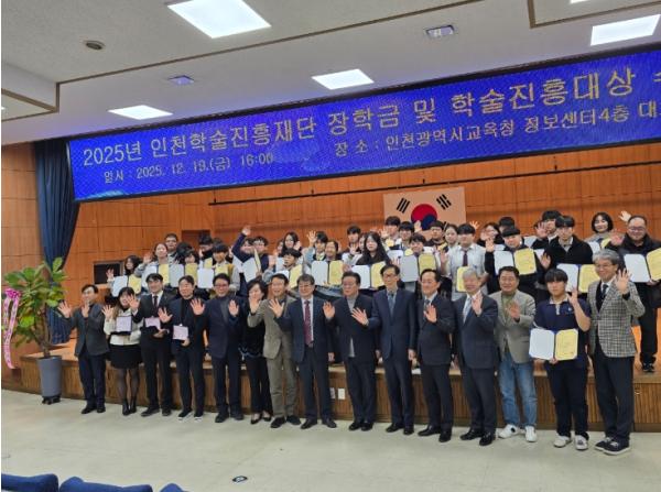 [종합뉴스채널, 박광덕기자] 인천광역시교육청은 재단법인 인천학술진흥재단과 함께 19일 ‘2025 인천학술진흥재단 장학금 수여식’을 열고, 초·중·고 학생 43명에게 장학금을 수여했다.