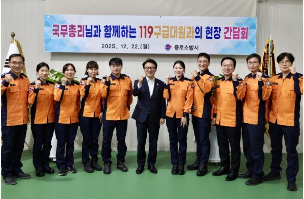 [종합뉴스채널, 김기훈기자] 김민석 국무총리는 12월 22일 서울 종로소방서를 방문하여 응급환자이송체계 최일선에 있는 119구급대원의 의견을 듣는 자리를 가졌다.