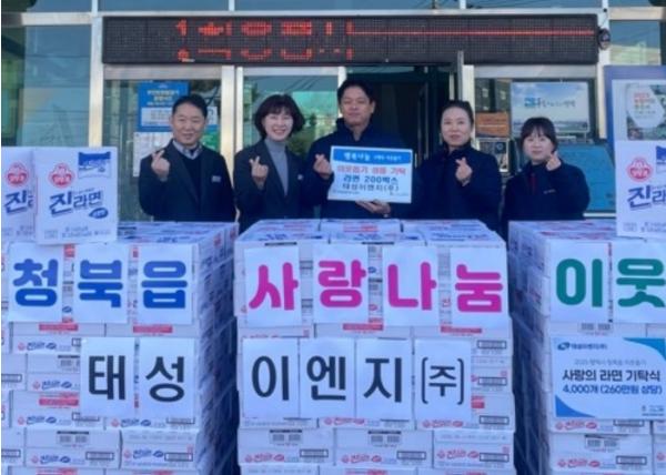 [종합뉴스채널, 최한솔기자] 평택시 청북읍에 있는 태성이엔지(주)는 지난 12월 30일, 청북읍 관내 어려운 이웃 지원을 위한 라면 200박스(260만 원 상당)를 청북읍 행정복지센터에 기부했다.