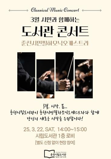 [종합뉴스채널, 발행인기자] 춘천시립도서관은 오는 3월 22일 오후 2시 1층에서 3월 시민과 함께하는 도서관 콘서트를 개최한다.