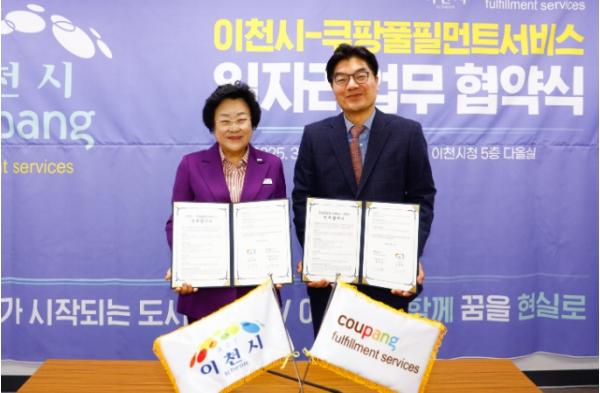 한편 이날 협약식에는 김경희 이천시장과 김종호 경재재정국장, 정종철 쿠팡풀필먼트서비스 대표, 정한모 정책실전무 등 주요 관계자들이 참석했다.