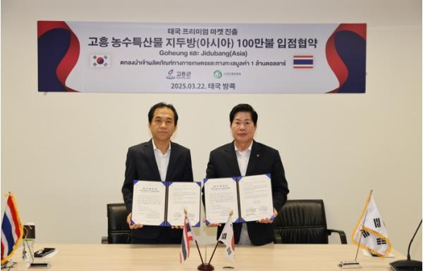 [종합뉴스채널, 발행인기자] 고흥군은 22일, 태국 지두방아시아와 100만 달러 규모의 농수산물 입점 협약을 체결했다고 밝혔다.