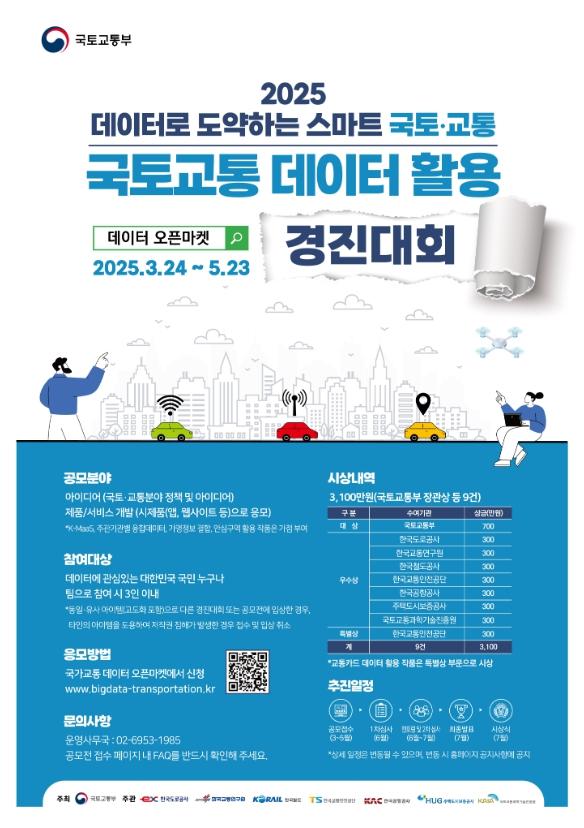 [종합뉴스채널, 발행인기자] 국토교통부는 3월 24일부터 5월 23일까지 2025 국토·교통 데이터 활용 경진대회를 개최한다.