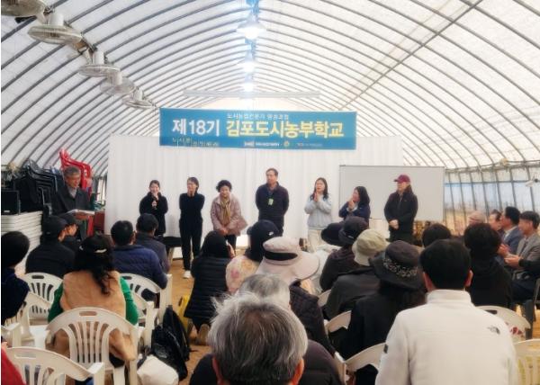 [종합뉴스채널, 최한솔기자] 김포시농업기술센터는 지난 3월 22일 고촌읍 태리에 소재한 풍년농장 교육장에서 도시농업 전문가 양성교육(제18기 김포도시농부학교) 입학식을 개최했다.