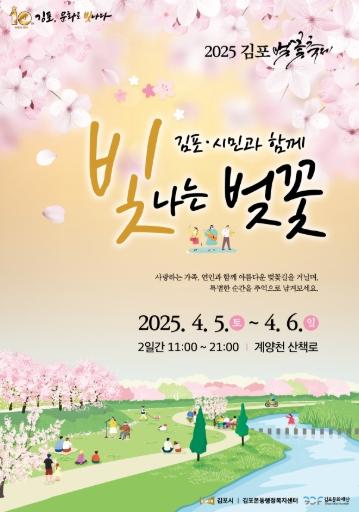 시 관계자는 “이번 2025 김포 벚꽃축제는 시민과 함께 봄을 만끽할 수 있는 특별한 축제”라며 “다양한 공연과 프로그램을 통해 가족, 친구, 연인 모두가 즐거운 시간을 보내시길 바란다”고 말했다.
