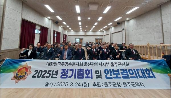 [종합뉴스채널, 김현성기자] 무공수훈자회 울주군지회가 24일 울주군 보훈회관에서 회원 70여명이 참석한 가운데 정기총회 및 안보결의대회를 개최했다.
