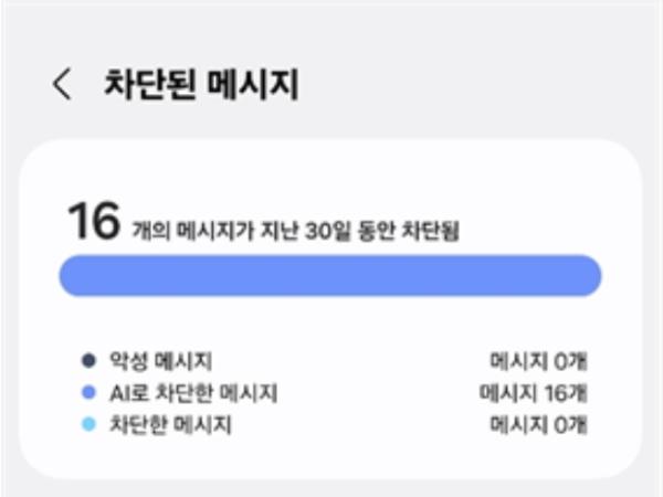 앞서 지난해 9월부터 방통위와 한국인터넷진흥원, 삼성전자는 해당 기능 개발을 진행해 왔으며, 이용자는 자동으로 차단된 메시지 중 수신이 필요한 경우 ▲차단된 악성 메시지 ▲인공지능(AI)으로 차단한 메시지 ▲내가 차단한 메시지에서 선택적으로 차단을 해제하거나 확인할 수 있다.