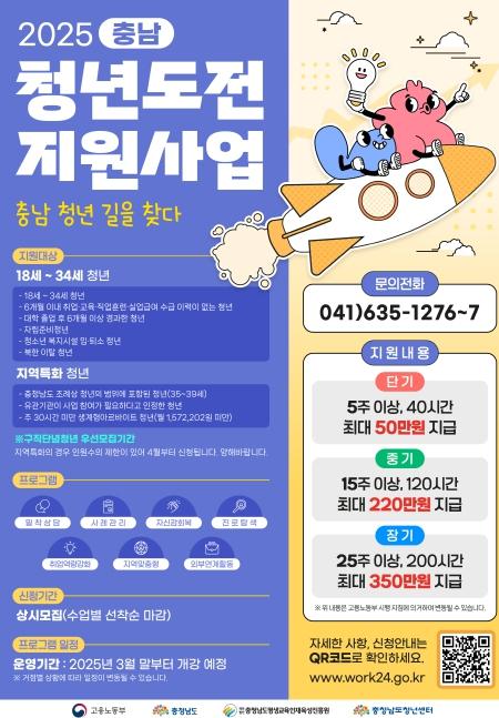 [종합뉴스채널, 김현성기자] 재단법인 충청남도평생교육인재육성진흥원이 2025년 청년도전지원사업에 대한 참여자 모집을 시작했다.