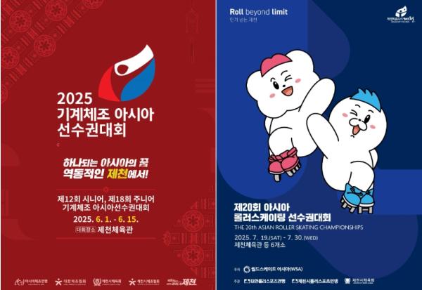 한편, △‘2025 기계체조 아시아선수권대회’는 6월 1일부터 6월 15일까지(15일간) 아시아 23개국, 1천여 명의 선수와 관계자가 참가한 가운데 제천체육관 일원에서 개최되며, △‘2025 아시아 롤러스케이팅 선수권대회’는 7월 19일부터 7월 30일까지(12일간) 제천체육관을 비롯한 6개 경기장에서 아시아 15개국 1천8백여 명의 선수단과 관계자가 참가할 예정이다.
