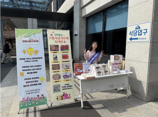 부여군은 구내식당 앞에서 옥경식품의 전통식혜와 단호박식혜를 나눠주며 부여군 답례품을 소개해 고향사랑기부제에 대한 호응을 높이는 데 주력했다.