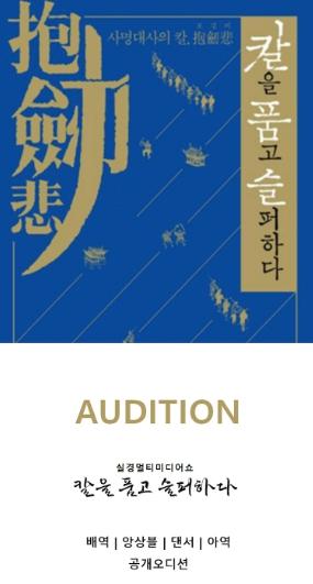 밀양문화관광재단은 오는 5월 22일부터 4일간 개최되는 제67회 밀양아리랑대축제 대표프로그램인 밀양강오딧세이‘칼을 품고 슬퍼하다’공연을 앞두고 전체 배역을 선발하는 공개오디션을 개최한다고 밝혔다.