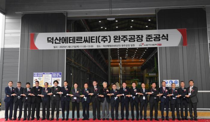 이날 준공식에는 덕산에테르씨티 위호선·이수훈 공동대표를 비롯해 김종훈 전북특별자치도 경제부지사, 유희태 완주군수, 유의식 완주군의회의장, 유관업체 임직원 등 약 150여 명이 참석해 기업의 새로운 도약을 축하했다.