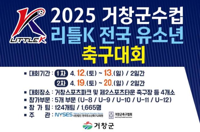 이번 대회는 (사)한국유소년축구교육원과 거창군축구협회가 주관하며, 전국 초등부 124개 팀, 1,665명의 축구 꿈나무와 관계자가 참가해 열띤 경쟁을 펼친다.