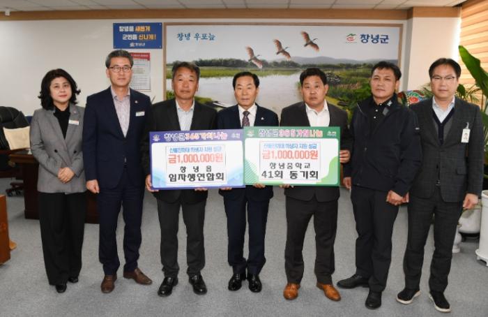 같은 날 창녕중학교 41회 동기회(회장 김순율)에서도 성금 100만 원을 전달했다.