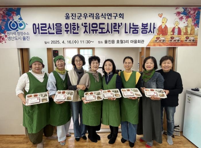 울진군우리음식연구회는 울진의 농특산물을 활용한 향토요리 개발과 전통 식문화 보급에 앞장서고 있는 단체로, 울진군농업기술센터와 협력하여 지역특화식품 개발, 대게비빔밥 퍼포먼스 등 다양한 활동을 펼치며 지역 축제에도 활발히 참여하고 있다. 이번 행사에서는 회원들이 직접 만든 ‘치유도시락’을 어르신들께 전달하며 정을 나누는 시간을 가졌다.
