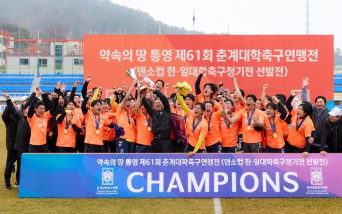 올해로 12년 연속 통영에서 개최된 이번 대회에는 전국 77개 대학 축구부가 참가해 ‘한산대첩기’(38개 팀)와 ‘통영기’(39개 팀) 두 개의 리그로 운영됐으며, 산양스포츠파크에서 결승을 향한 뜨거운 승부를 펼쳤다.