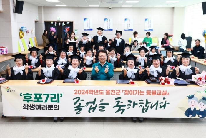 이번 졸업식은 후포7리 등불교실 졸업생 21명이 참석하여 지난 3년간 학업의 결과물로 수료증 및 졸업앨범을 전달받았으며, ‘석별의 정’을 합창하며 훈훈한 감동으로 식을 마쳤다.
