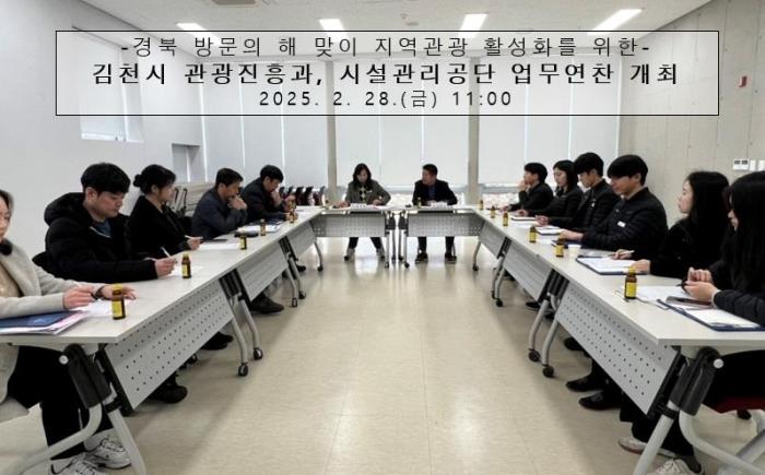 • 김천시는 2월 28일 김천시립박물관 세미나실에서 김천시설관리공단과 주요 관광 현안 사업에 대한 업무연찬회를 가졌다.
