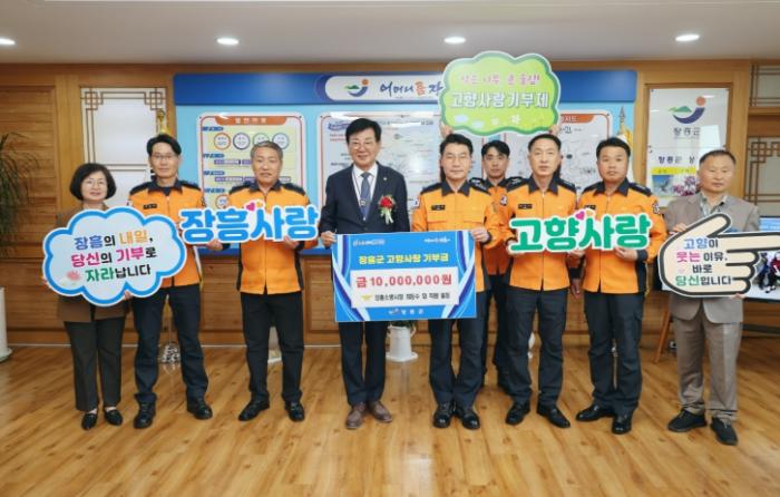 • [종합뉴스채널, 김현성기자] 장흥소방서 직원 100명이 8일 장흥군에 고향사랑기부금 1천만원을 기탁하며 지역과 함께하는‘따뜻한 파수꾼’의 모습을 보여주었다.