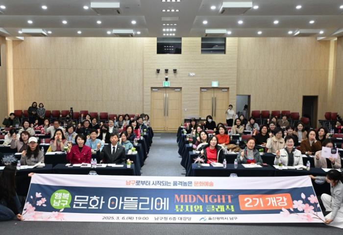• 울산 남구는 지난 6일 6층 대강당에서ㅓ 명화의 아름다움과 클래식 음악의 깊이를 경험할 수 있는 남구만의 오감만족 특화 프로그램 ‘행복남구 문화 아뜰리에’2기를 개강했다.