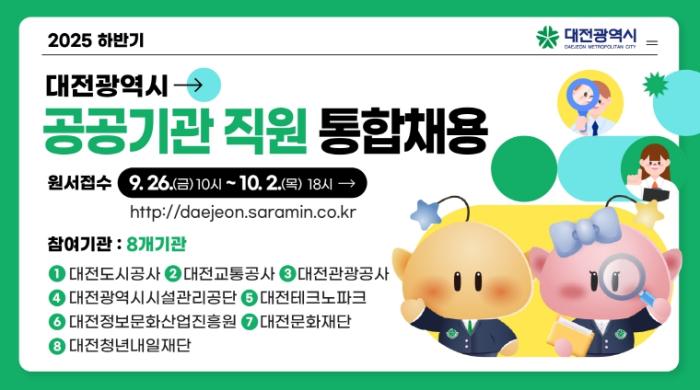 • 대전시‘2025년 하반기 공공기관 직원 통합채용’실시