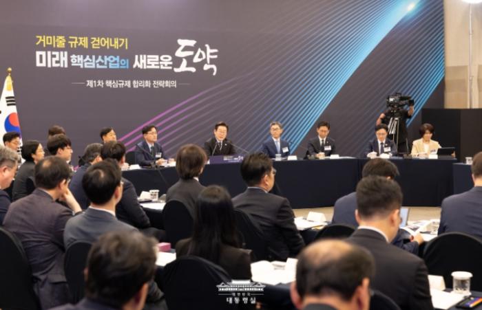 [종합뉴스채널, 박광덕기자] 정부는 9월 15일 오후 2시 30분 한국과학기술연구원(KIST, 서울시 성북구 소재)에서 이재명 대통령 주재로 관계부처 장관, 기업 관계자, 민간 전문가 등 80여명이 참석한 가운데 「제1차 핵심규제 합리화 전략회의」를 개최했다.