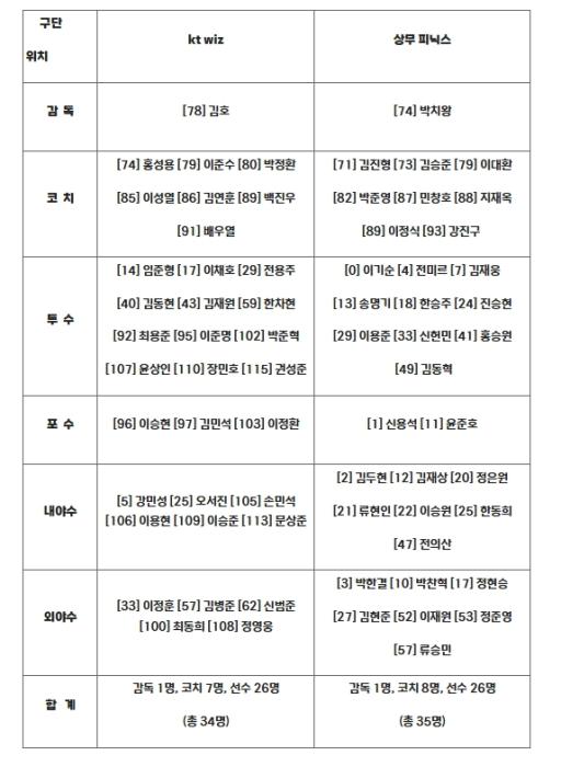 • [종합뉴스채널, 김경석기자] 10월 1일(수) 오후 7시 고척스카이돔에서 개최되는 2025 KBO 퓨처스리그 챔피언결정전에서 맞붙는 KT와 상무의 출장자 명단이 발표됐다.