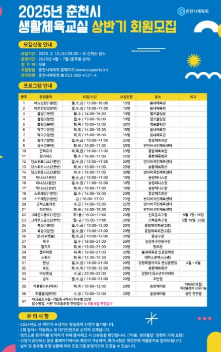 신청은 선착순으로, 춘천시체육회 홈페이지에서 하면 된다.